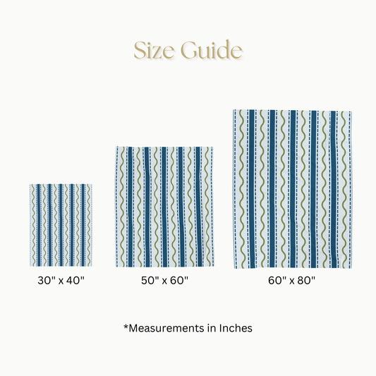 Velveteen Blanket with Blue Stripes and Green Waves