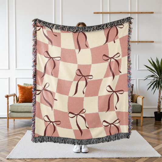 Picnic Blanket Throw - Strawberry Checker Design